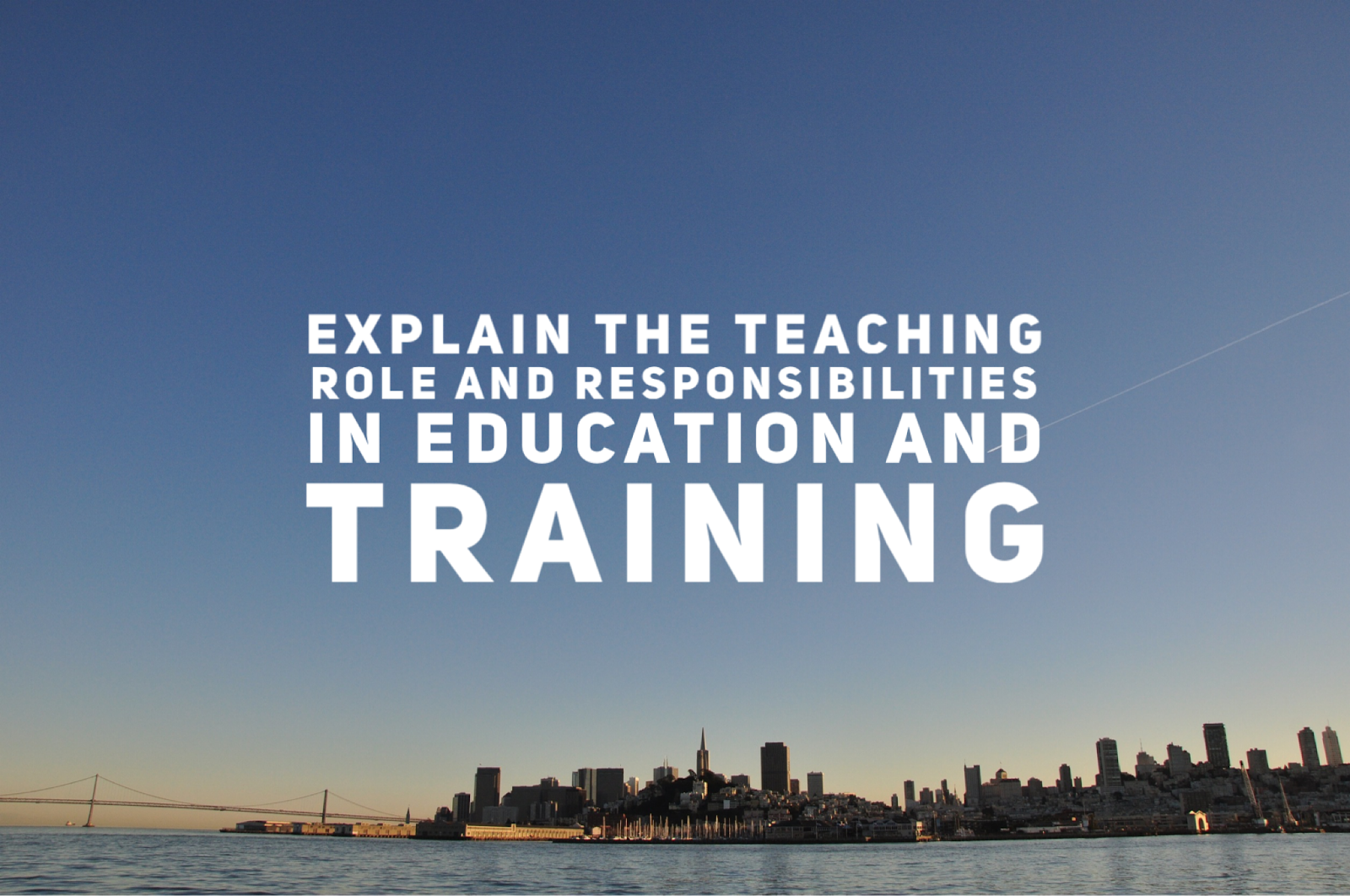 1. Understand the teaching role and responsibilities in education and training 1.1 Explain the teaching role and responsibilities in education and training 1.2 Summarise key aspects of legislation, regulatory requirements and codes of practice relating to own role and responsibilities 1.3 Explain ways to promote equality and value diversity 1.4.